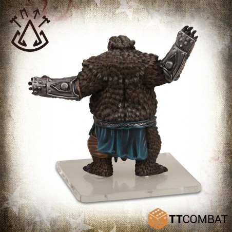 Sa prise classique, le Bear Hug, est sa signature et certains prétendent qu’il en est le créateur original. Cette technique lui permet de contrôler complètement ses adversaires et de les immobiliser avec une force impressionnante. Lorsqu’il souhaite achever un lutteur, il utilise son Bear Body Slam, une capacité active dévastatrice qui écrase même les combattants les plus imposants. De plus, son rugissement terrifiant perturbe les lutteurs ennemis, les obligeant à relancer les dés de foule, car le son assourdissant couvre tous les cris d’encouragement, donnant à Tordenbjorn un avantage stratégique unique.