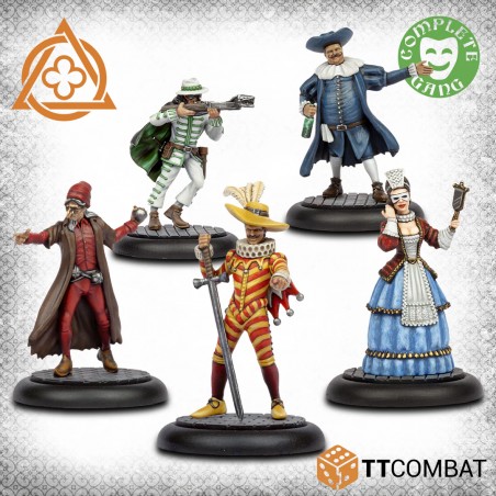 Cette boîte contient un gang complet de Doués. Les Gifted peuvent être utilisés comme une faction de mercenaires, et n’importe quel membre peut rejoindre un autre gang pour lui donner plus de puissance. L’intrépide Il Capitano, l’autoritaire Il Dottore, la narcissique Colombina, la vengeresse Brighella et le meurtrier Pantaleone forment également un gang à part entière, offrant aux joueurs de multiples possibilités stratégiques et narratives.