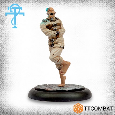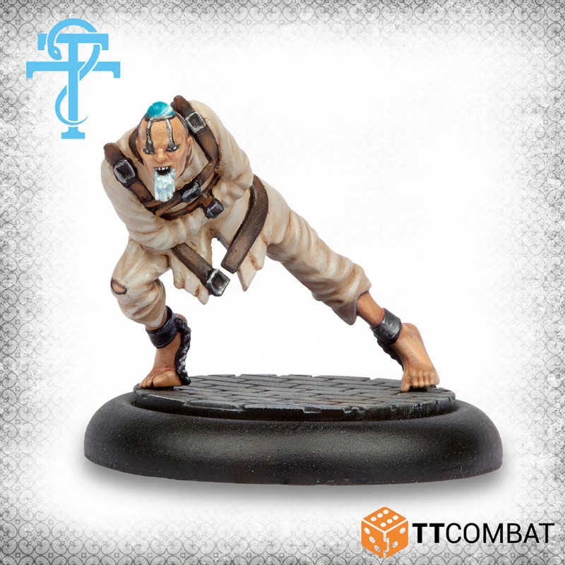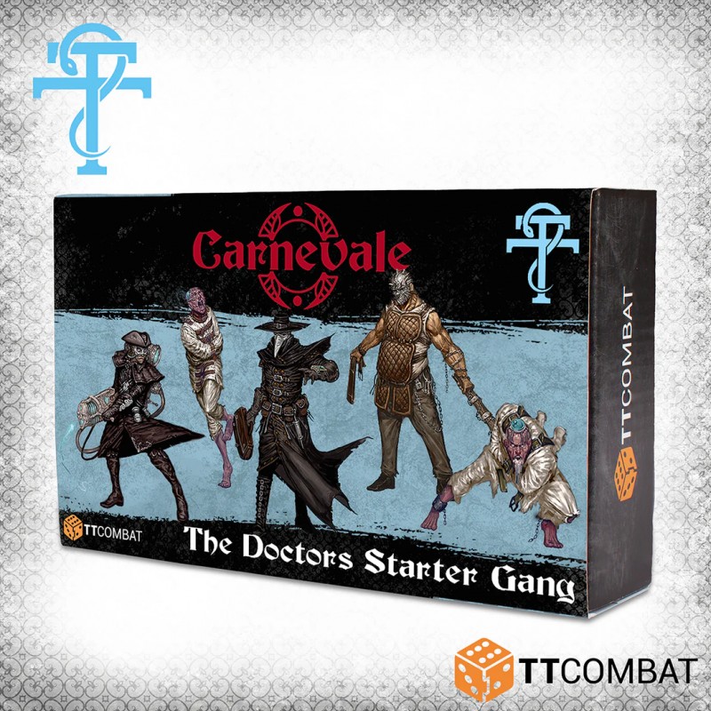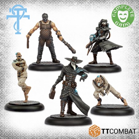 Cette boîte constitue un point de départ idéal pour créer un gang de Médecins. Elle comprend un Docteur de la Peste spécialisé en magie, un Gardien brutal et un Docteur de l’Arsenal équipé d’un puissant pistolet à longue portée qui puise son énergie dans les deux fous. Les gangs de Médecins se concentrent sur l’usage dangereux de la magie, utilisant des hommes de main pour alimenter leurs sortilèges et maximiser leur puissance stratégique.