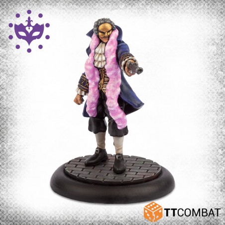 Cette boîte de Héros renforce un gang de Patriciens avec un ensemble de personnages redoutables. Le Barnabotti, armé d’un pistolet ou d’une épée, frappe vite et fort, tandis que le Noble aventurier apporte des pouvoirs magiques innés grâce à sa tête réduite. Le Maître d’escrime complète le trio en guidant les nobles dans chaque affrontement. Ces personnages centraux sont soutenus par deux cambrioleurs agiles et rapides, capables de se faufiler et d’exploiter leur dextérité pour surprendre l’adversaire et protéger leurs alliés.