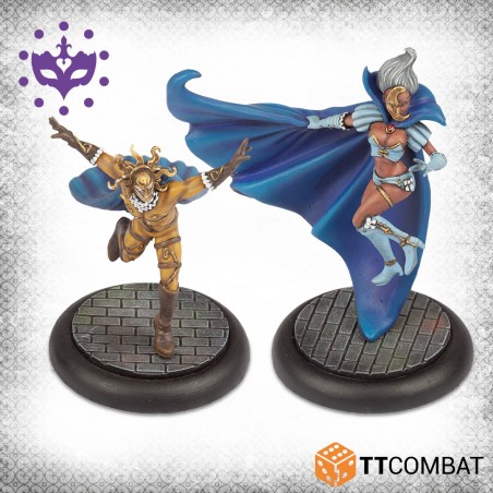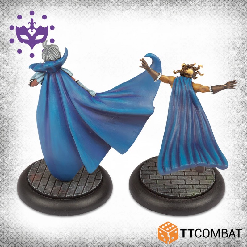 Ce kit contient 2 figurines en résine et 2 socles en plastique. Les socles en pierre illustrés ne sont pas inclus. Les figurines sont livrées non peintes et non assemblées, nécessitant nettoyage et montage, avec éventuellement le rebouchage de quelques petits trous. Soleil et Lune constituent un duo parfait pour un gang de Patriciens, offrant contrôle, magie et puissance de feu, et rendant chaque partie plus stratégique et spectaculaire.