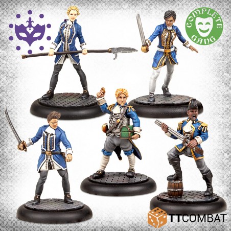 La Marine vénitienne apporte flexibilité et puissance à vos gangs de Patriciens. Le Sopracomito dirige l'équipe avec autorité et stratégie, épaulé par un lieutenant de vaisseau armé d’un fusil à cran d'arrêt et un enseigne de vaisseau expérimenté. Deux recrues navales complètent la formation, assurant la supériorité de votre faction sur les canaux et les berges.