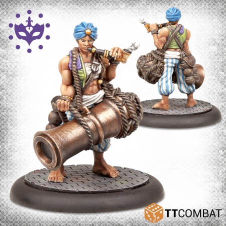 Le set contient 5 figurines en résine et 5 socles en plastique. Les socles en pierre illustrés ne sont pas inclus. Les figurines sont fournies non peintes et non assemblées, nécessitant nettoyage et montage, avec éventuellement le rebouchage de quelques petits trous. La Flotte ottomane est un ajout stratégique pour tout gang de Patriciens, combinant puissance, mobilité et contrôle tactique.