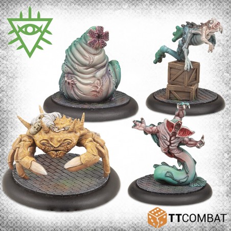 Cette boîte fournit une série de renforts Feral Rashaar, parfaits pour compléter ou renforcer les gangs Rashaar, notamment ceux composés de Rashaar farouches. L’anguille Caandru frappe avec une vitesse fulgurante, comparable à une chute, le Brachyura est un crustacé robuste que seuls les adversaires les plus forts osent affronter, la Salaacia inonde ses cibles avec un flot d’eau implacable, et le Telcine bondissant se déplace rapidement pour soutenir ses alliés et atteindre les objectifs stratégiques.