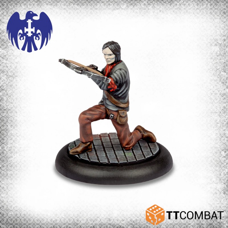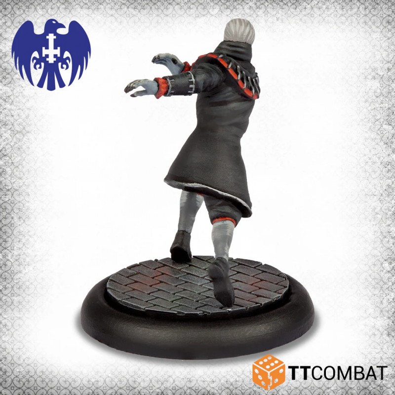 Cette boîte constitue un renfort idéal pour tout gang de Strigoi. Elle inclut deux Strigoi communs qui tiennent la ligne et agissent comme des hommes de main redoutables. Ils sont accompagnés d’un Thrall armé d’une arbalète, capable d’infliger des dégâts à distance et de fournir des points d’action supplémentaires aux Strigoi. Pour compléter le groupe, deux Moissonneurs apportent leur férocité extrême, rapides et mortels, capables d’anéantir presque tous les adversaires.