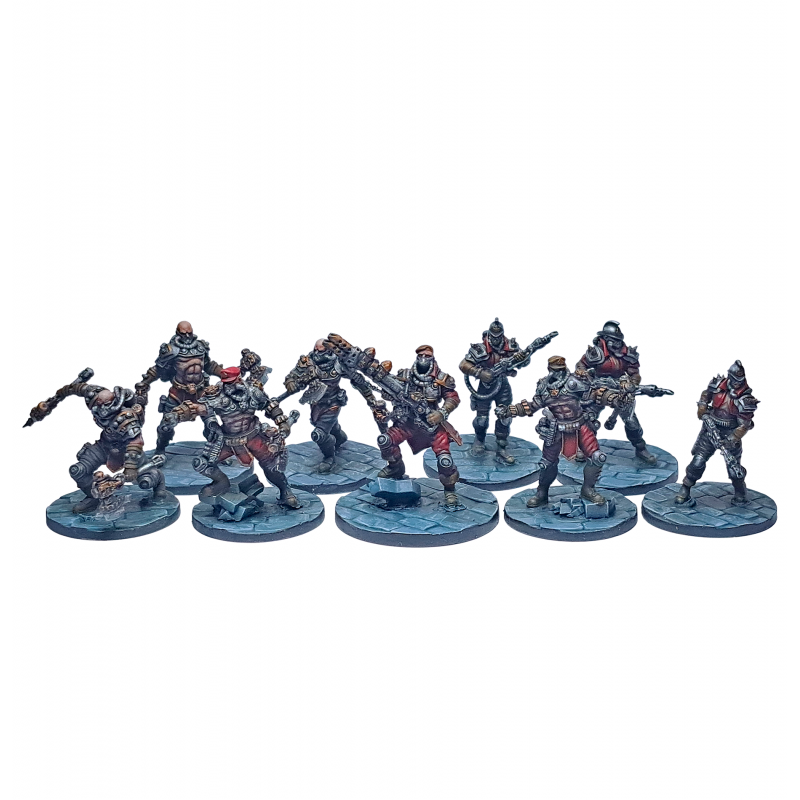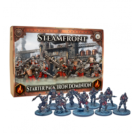 Ce starter Iron Dominion est idéal pour débuter. Il contient 9 figurines imprimées en 3D avec leurs 9 socles texturés, ainsi que les règles, les cartes de profils et tous les pions, dés et tokens nécessaires pour jouer. Les figurines incluses sont : 1 Ghorza Maître-Feu, 2 Cadrefer, 3 Ignifer et 3 Hurlefer. Une mini-campagne de trois scénarios consacrée à l’ascension de Ghorza Maître-Feu est également disponible en téléchargement gratuit sur le site de Steamfront Universe.