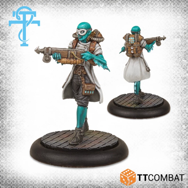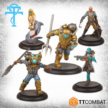 Un Collecteur reste à bord du navire pour remonter les spécimens capturés, tandis qu’un assistant de plongée manie un trident plus petit pour protéger son maître lors des expéditions sous-marines. Pour démontrer à l’Ospedale l’efficacité de leurs expériences, une Sirène complète l’équipe, un hybride humain-poisson constituant un horrible affront à la nature.
