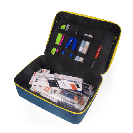 La mallette est fabriquée en matériaux résistants et légers, offrant à la fois solidité et maniabilité. Elle propose suffisamment d’espace pour ranger couteaux, limes, pinces, pinceaux, mini-forets et tous les petits accessoires qui nécessitent un emplacement sûr. Chaque outil reste à sa place, ce qui facilite la préparation et le transport de votre matériel.