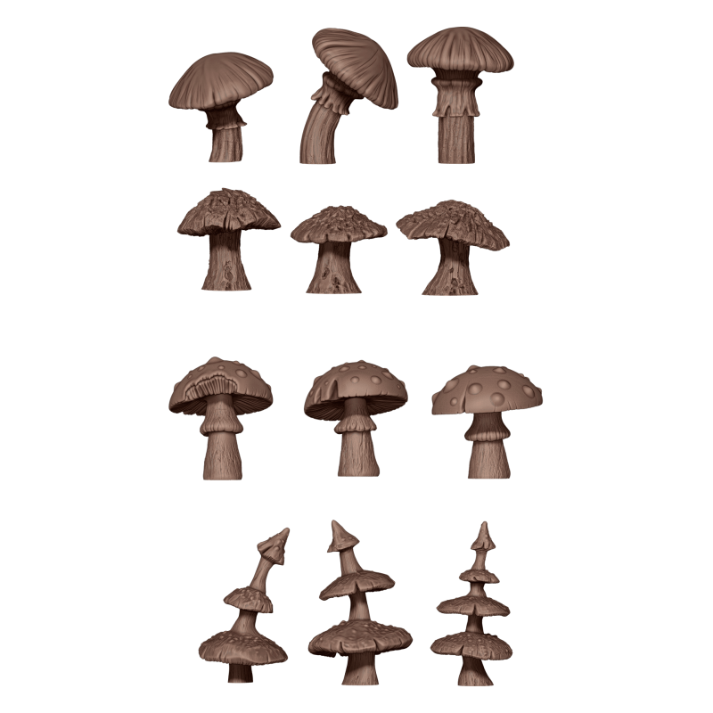 Idéaux pour les armées et créatures évoluant dans des environnements naturels, mystiques ou fantastiques, ces 12 champignons se combinent facilement pour composer des décors variés et cohérents. Leur intégration sur vos socles ou scènes permet de renforcer le réalisme et la créativité de chaque composition, tout en offrant une touche originale et captivante à vos projets.