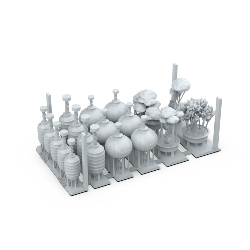 Ces accessoires sont idéaux pour recréer des jardins cérémoniels, des temples, des villages orientaux ou des mondes inspirés de l’Asie. Leur design soigné permet de combiner nature et architecture de manière équilibrée, offrant une profondeur et une cohérence visuelle à vos dioramas et socles de figurines.