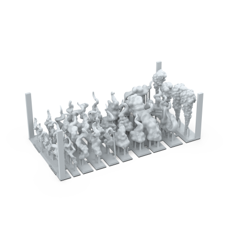 Ces effets sont parfaits pour représenter des explosions, des armes récemment tirées, des sorts, des feux ou des atmosphères denses et mystérieuses. Leur conception détaillée capture le volume et la fluidité de la fumée, créant un réalisme saisissant et un impact visuel fort sur vos dioramas et bases de figurines.