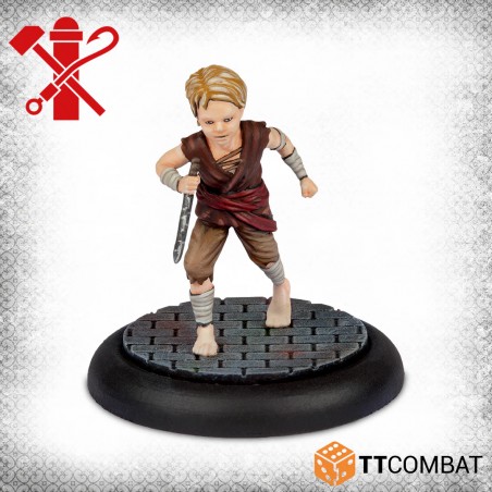 Le set contient 5 figurines en résine et 5 socles en plastique. Les socles en pierre illustrés ne sont pas inclus. Les figurines sont livrées non peintes et non assemblées. Le kit nécessite un nettoyage et un assemblage, et peut demander le rebouchage de quelques petits trous. Il permet de constituer un gang complet et stratégiquement équilibré, prêt à dominer les rues de Venise.
