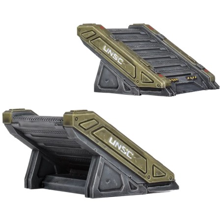 Cette extension introduit également un nouveau décor interactif : une paire de canons à hommes de l’UNSC permettant de propulser rapidement votre équipe de tir à travers la zone de combat. Ces éléments de décor moulés sont utilisés dans de nouveaux scénarios inclus dans le livret d’extension. Celui-ci introduit également un format de jeu inédit à double tapis pour Halo: Flashpoint, avec de nouvelles règles et missions. Les joueurs peuvent ainsi combiner deux plateaux ou tapis standards, ou utiliser le tapis de jeu en néoprène Reach double format pour des batailles encore plus vastes et spectaculaires.