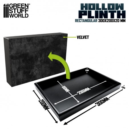 Un support pratique pour les projets de modélisme avancés. Fabriqué en bois MDF robuste, ce socle combine solidité et légèreté, ce qui le rend parfaitement adapté aux projets de modélisme et de diorama. Sa finition noire sobre met en valeur vos créations sans détourner l’attention des détails de la scène. L’intérieur creux offre l’espace nécessaire pour créer des décors en profondeur, intégrer des effets de terrain ou accueillir des coulées de résine destinées à représenter de l’eau, de la lave ou d’autres surfaces liquides.