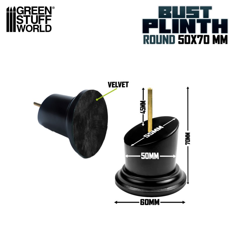 Un format équilibré pour exposer vos créations avec élégance. La surface supérieure de 5 cm de diamètre permet d’accueillir confortablement un buste ou une petite pièce de collection, tandis que la base de 6 cm de diamètre assure une excellente stabilité. Avec une hauteur totale de 7 cm, ce socle élève suffisamment la figurine pour la mettre en valeur dans une vitrine ou sur une table d’exposition. La tige en laiton de 4 mm de diamètre et de 4,5 cm de longueur facilite l’installation du modèle et garantit un maintien fiable.