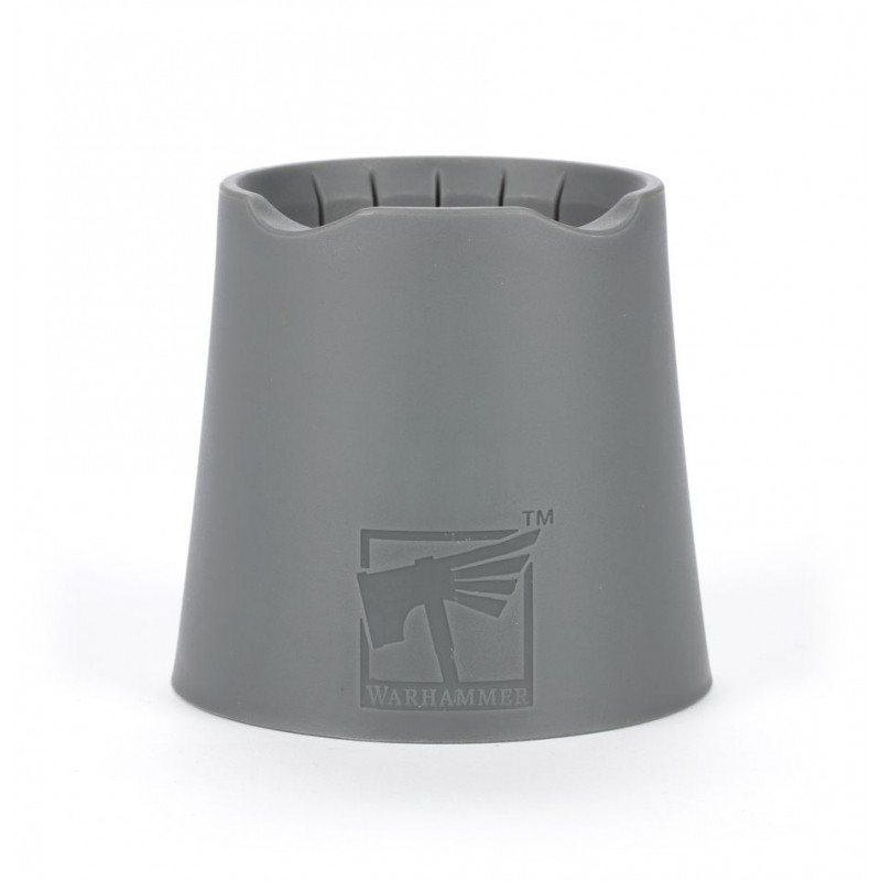 Mieux qu'un simple récipient, le Pot à Eau Citadel a été conçu par les peintres, pour les peintres. Moulé dans un plastique gris solide, il comporte sur sa face intérieure et son fond des fentes dont la texture optimise le nettoyage des pinceaux. Au bord, un canal permet de déposer les pinceaux à l'horizontale quand ils ne servent pas, et il y a contre le bord interne des fentes de largeur décroissante – une fois que vous avez rincé votre pinceau dans l'eau, faites-le glisser le long d'une fente pour bien lisser sa pointe!