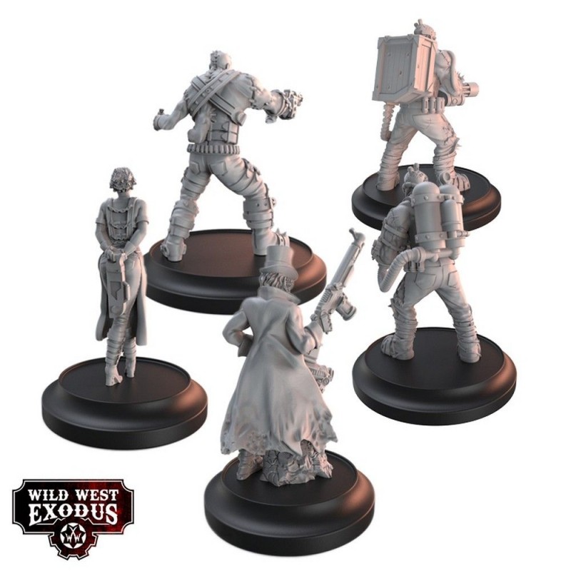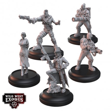 Le coffret Father of the Enlightened Posse contient 5 miniatures en résine et plastique : 1x Bursen Carpathian, 1x Harmony Ratchet, 1x John Younger, 2x Brutes et 5 socles. Les miniatures sont fournies non peintes et nécessitent un assemblage. Les cartes d’unité de personnage ne sont pas incluses et peuvent être consultées sur le site officiel de Wild West Exodus. Parfait pour enrichir vos armées et créer des scénarios captivants mêlant science, innovation et tactique.