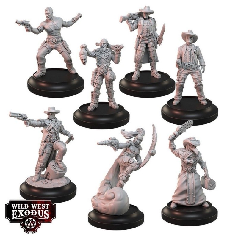 Le coffret Dead or Alive Posse contient 7 miniatures en résine multi-parties : Lilith Hart, Yann “The Wraith” Packer, Longtree, Thomas Tate Tobin, Jim Petersen, Broad Arrow Jack et James “The Masked Marshal” McClain, ainsi que 7 socles. Les figurines sont fournies non peintes et nécessitent un assemblage. Les cartes d’unité de personnage ne sont pas incluses et sont disponibles sur le site officiel de Wild West Exodus. Un ensemble idéal pour enrichir vos parties avec des personnages emblématiques et des scénarios intenses.