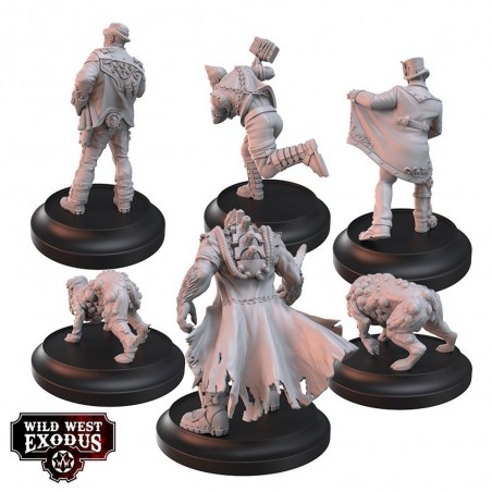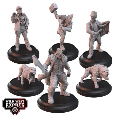 Le coffret Tainted Biology Posse contient 6 miniatures en résine multi-parties : Viktor Beitel, Skip McKidney, The Fratelli’s, Marcus Cunningham, Castor et Pollux, ainsi que 6 socles. Les figurines sont fournies non peintes et nécessitent un assemblage. Les cartes d’unité de personnage ne sont pas incluses et sont disponibles sur le site officiel de Wild West Exodus. Un ensemble idéal pour enrichir vos armées avec des profils atypiques et créer des scénarios sombres et immersifs.