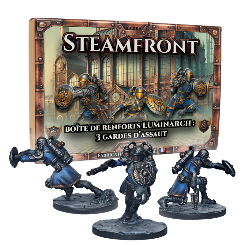 Du contenu supplémentaire pour enrichir votre expérience : une page de lore dédiée aux gardes d’assaut ainsi que les coûts en points de l’unité sont disponibles en téléchargement gratuit sur Steamfront Universe. Cette boîte constitue une solution pratique et immersive pour les joueurs souhaitant développer leur faction Luminarch avec une unité spécialisée et immédiatement exploitable.