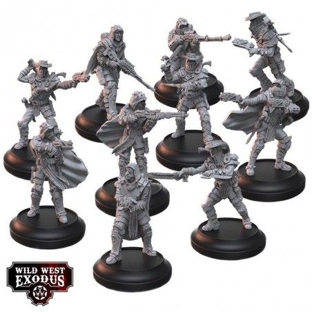 Ce kit contient 10 miniatures en résine multipart de la Cohorte Spica, chacune accompagnée d’un socle pour exposition ou jeu. Les miniatures sont fournies non peintes et nécessitent assemblage, offrant aux hobbyistes l’occasion de personnaliser chaque figurine. Les cartes d’unité ne sont pas incluses et peuvent être trouvées sur le site de Wild West Exodus. La Cohorte Spica constitue un ajout impressionnant à toute collection, alliant attrait esthétique et profondeur narrative pour les affrontements sur table contre les forces de l’Hex.
