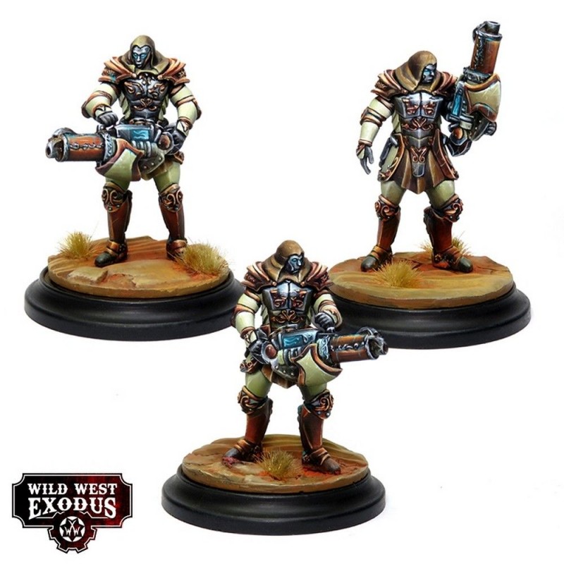 Ce kit contient 3 miniatures Cor Caroli Nyx en résine multipart avec 3 socles. Les miniatures sont fournies non peintes et nécessitent assemblage, permettant aux hobbyistes de personnaliser chaque détail. Les cartes d’unité ne sont pas incluses et peuvent être trouvées sur le site Wild West Exodus. Les Cor Caroli Nyx constituent un ajout impressionnant à toute collection de l’Ordre et une force redoutable à déployer sur le champ de bataille contre l’Hex.
