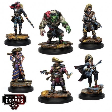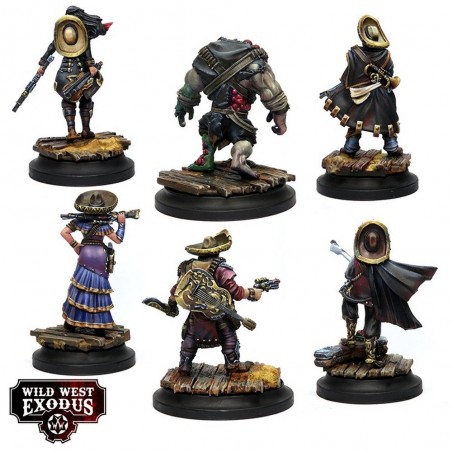 Le set Bloody Espinosas Posse permet de constituer une unité complète de personnages emblématiques, idéale pour enrichir une armée de hors-la-loi ou renforcer vos scénarios narratifs. Ce kit contient :