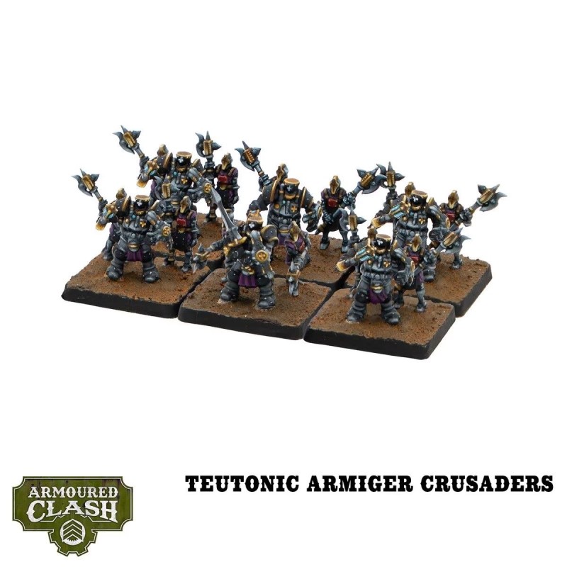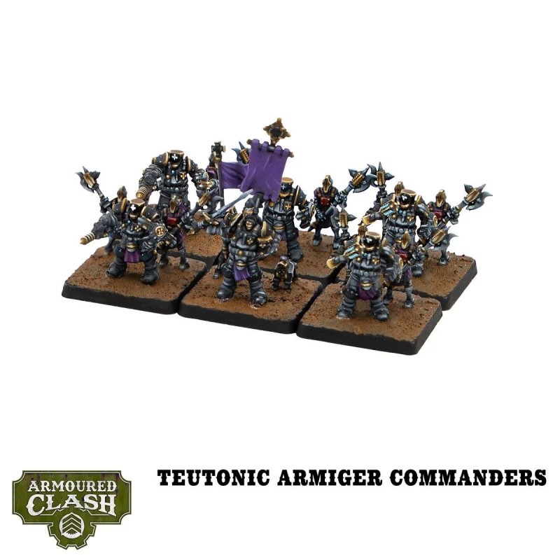 Une force complète et polyvalente : cette boîte contient tout le nécessaire pour aligner un Battlegroup Gelve Auxiliary. Vous y trouverez des Teutonic Armiger Commanders capables de mener depuis la ligne de front, soutenus par les Teutonic Armiger Castellans et leur armement voltaïque à longue portée. Les Teutonic Armiger Crusaders, accompagnés de leurs Squire Automatas, excellent dans les affrontements au corps à corps, tandis que les Panzerwagen Armoured Transports assurent un déploiement rapide au cœur des combats les plus intenses.