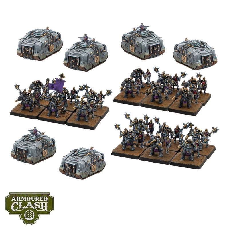 Déployez la puissance stratégique de l’Imperium avec la boîte Armoured Clash Battlegroup – Gelve Auxiliary, issue de l’énigmatique Ordo Teutonic. Grâce à leur discipline, leur sens de l’organisation et leur approche pragmatique de la guerre, ces forces excellent dans la conduite d’opérations à grande échelle, faisant de ce set un renfort idéal pour toute armée de l’Imperium.