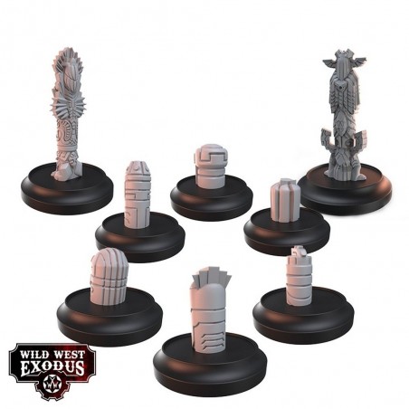 J'en profite !Véritables symboles de foi et de tradition, les Totems Spirituels sont des artefacts sculptés à la main qui témoignent de la dévotion de la Warrior Nation envers les esprits de la terre et le Grand Esprit. Ces structures mystiques sont érigées partout où les guerriers s’installent, servant à la fois de repères sacrés et de points de connexion avec le monde spirituel. Sur une table de jeu, ils apportent immédiatement une forte identité visuelle et narrative à vos forces, renforçant l’immersion dans l’univers de Wild West Exodus.