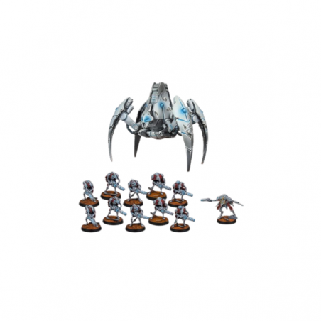 Ce pack Vanguard met à votre disposition une force offensive équilibrée autour d’un commandement solide. Il inclut un Overseer, véritable général chargé de diriger vos troupes, accompagné de Robot Warriors équipés de puissants canons Reaper pour fournir un appui de tir redoutable. En complément, le Robot Legions Spider apporte une présence imposante et destructrice, idéale pour infliger de lourds dégâts et contrôler des zones clés du champ de bataille.