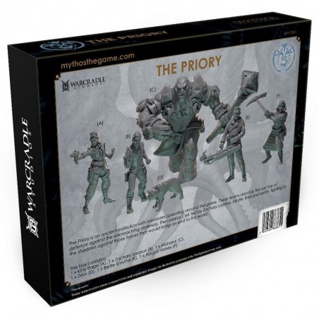 Le Priory Faction Starter Set met en scène une cellule opérationnelle dirigée par le professeur Zachary Lazarus, un érudit occulte chargé de recevoir les directives de la mystérieuse Madame Adrestia. Chaque cellule du Priory fonctionne de manière autonome, isolée des autres, et mène ses propres missions à travers le monde. La cellule Lazarus se distingue par son approche pragmatique et son mélange d’érudition et d’action sur le terrain. Aux côtés du professeur, on retrouve Abigail Halsey, archéologue anarchiste dont les découvertes ont permis de révéler des secrets essentiels liés au Mythos, ainsi que Bertie Smythe, ancien pilote traumatisé de la Grande Guerre, devenu spécialiste des interventions armées.