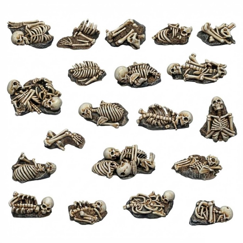 Le set comprend 20 vestiges de squelettes, livrés non peints et fixés à leur matrice d’impression pour un transport sécurisé. Les supports sont faciles à retirer, permettant une préparation rapide avant peinture et assemblage. Cet ensemble constitue une solution pratique et efficace pour enrichir vos créations et donner vie à des scènes détaillées et immersives.