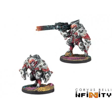 Ce coffret propose deux figurines en résine thermoplastique issues de la gamme Infinity, représentant une nouvelle génération de remotes intelligents capables d’opérer avec ou sans supervision humaine. Grâce à la compétence spéciale Cyberplug, les Sartroids peuvent fonctionner comme des unités synchronisées classiques ou agir de manière totalement autonome si leur contrôleur est neutralisé ou si leur déploiement l’exige. Ce mécanisme unique en fait une extension idéale pour les armées de la Nouvelle Vague, notamment pour les joueurs ayant commencé leur force avec le Next Wave Action Pack.