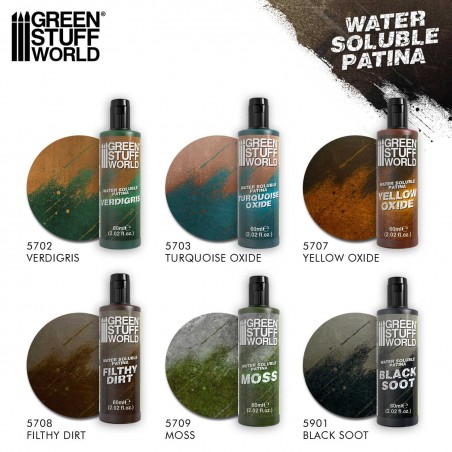 La patine soluble dans l’eau est une solution idéale pour les modélistes et passionnés de wargame souhaitant apporter un réalisme avancé à leurs figurines, décors et dioramas. Sa formule acrylique partiellement réactivable permet de reproduire facilement des effets naturels tels que la saleté, la rouille, l’humidité, la suie ou encore l’usure. Grâce à sa finition ultra-mate, les pigments se déposent de manière organique dans les creux et textures, offrant un rendu bien plus crédible qu’une peinture classique.