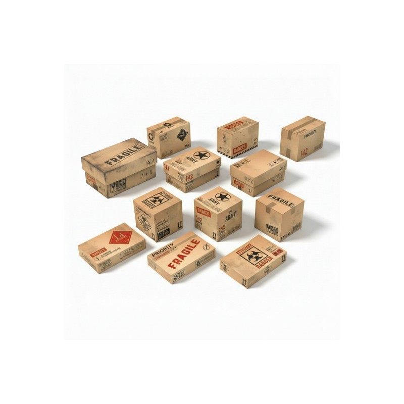 Grâce à leur conception légère et modulaire, ces éléments s’intègrent facilement dans tous types de scénarios. Idéales pour les échelles 1:48 et 1:35, elles permettent de représenter efficacement des zones de stockage ou des environnements industriels détaillés sans encombrer votre table de jeu. Leur variété de formes offre également de nombreuses possibilités de mise en scène.