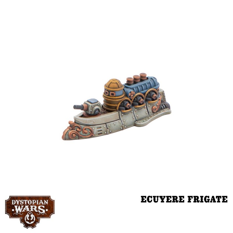 Le contenu comprend 3 Ecuyere Frigates (pouvant également être assemblées en Bretteur Destroyers), 3 Chevalier Cruisers (avec options de montage incluant Charlemagne Heavy Cruisers, Loire Light Cruisers, Picardy Monitors ou Concordat Command Cruisers), ainsi que 6 Escort Tokens et 5 SRS Tokens. Le coffret inclut également 1 livre de règles, 1 deck Victory & Valour, 20 dés d’action, 6 dés de dégâts critiques, 1 planche de jetons Dystopian Age, 1 planche de jetons Dystopian Wars et outils de mesure et objectifs. Les figurines sont fournies non peintes et peuvent nécessiter un assemblage.