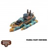 Ce coffret Sultanate Frontline Squadrons permet aux amiraux au service de Mustafa le Doré de renforcer leurs flottes avec une grande flexibilité. Les forces du Sultanat reposent sur des unités polyvalentes et destructrices, capables d’adapter leur rôle selon les besoins stratégiques. Le croiseur Iskandar constitue une base fiable et puissante, armé des redoutables canons à rails Pala. Les monitors d’Izmir offrent un appui feu efficace tout en évoluant en eaux peu profondes, tandis que le croiseur lourd Sadrazam incarne la colère du Sultan sur les champs de bataille navals. Les deux croiseurs inclus peuvent également être combinés pour former un vaisseau bicorps Ikili, soit en version Bayezid Grand Cruiser, soit en Mehmed Command Cruiser. Enfin, les frégates Temir peuvent opérer de manière indépendante ou être rattachées à des unités plus importantes.