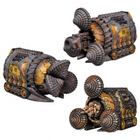 J'en profite !Parmi les créations mécaniques les plus redoutables des Veer-myn, le Tunneller occupe une place à part. Maîtres dans l’art de détourner les machines de leurs anciennes civilisations hôtes, ces créatures exploitent souvent des équipements miniers pour les transformer en véritables armes de guerre souterraines. Capable de creuser à travers des kilomètres de roche, le Tunneller contourne les défenses ennemies pour surgir brutalement au cœur des lignes adverses et libérer des hordes de Night Crawlers hurlants.