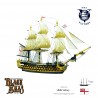 Symbole absolu de la Royal Navy, HMS Victory est l’un des navires les plus emblématiques de l’ère de la voile. Ce vaisseau de premier rang, armé de 100 canons répartis sur trois ponts, incarne toute la puissance des grandes flottes de ligne. Dans Black Seas, il s’agit d’une pièce maîtresse capable d’influencer le cours d’une bataille grâce à sa résistance exceptionnelle et sa puissance de feu redoutable. Son rôle historique lors de la bataille de Trafalgar en 1805, où elle servit de navire amiral à Nelson, est fidèlement retranscrit dans ses règles de jeu et ses capacités sur table.