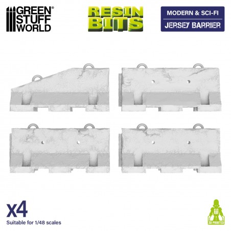Ce produit est livré non peint, offrant aux modélistes la liberté de personnaliser entièrement leurs décors selon leur univers de jeu. Compatible avec les figurines à l’échelle 1:48 à 1:35, il s’intègre facilement dans de nombreux systèmes de jeu et projets de modélisme. Une version alternative de barrières Jersey endommagées est également disponible, idéale pour représenter des environnements post-apocalyptiques, des zones abandonnées ou des champs de bataille ravagés. Ensemble, ces options permettent de couvrir un large éventail de scénarios et d’ambiances.