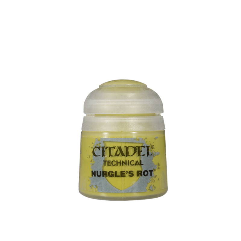 J'en profite !Citadel Technical « Nurgle’s Rot » (12 ml) est une peinture acrylique à base d’eau, conçue pour apporter des effets de corruption organique, de pus ou de morve sur vos figurines et décors. Elle appartient à la gamme Technical de Citadel, dédiée aux finitions à effets spéciaux. Cette teinte vert‑jaunâtre translucide, à finition brillante, permet de créer rapidement un aspect « infecté » ou « malade » qui enrichit le visuel de vos projets wargame.