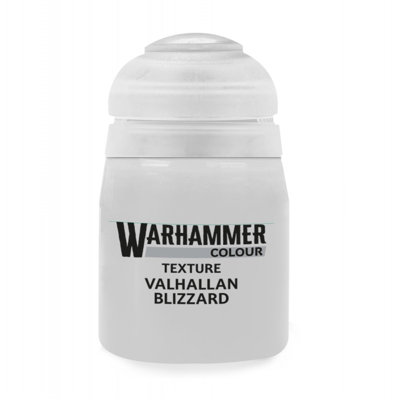 Le rendu de Valhallan Blizzard se caractérise par une texture blanche, épaisse et légèrement granuleuse qui évoque la neige fraîchement tombée ou une couche givrée recouvrant des surfaces variées. Appliquée en couche généreuse, elle permet d’obtenir un effet de relief visuel convaincant, prêt à être retravaillé par lavis ou éclaircissements pour accentuer la profondeur. Le résultat est un socle ou un décor qui attire l’œil par son contraste lumineux et réaliste, tout en restant simple à mettre en œuvre.
