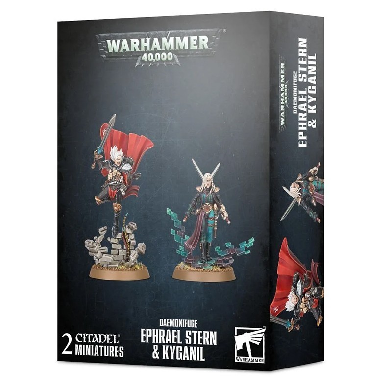 Les fiches techniques d'Ephrael Stern et Kyganil pour Warhammer 40,000 sont incluses dans la boîte.