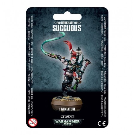 Ce kit plastique de 10 pièces permet d'assembler une Succubus équipée d'un neurocide et d'un vouge d'archite. La Succubus porte sur le dos un râtelier dont les trophées démontrent ses prouesses guerrières, et sur le cou des injecteurs de drogues de combat.