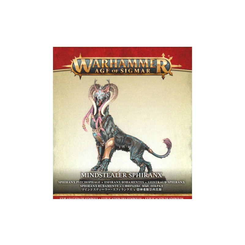 Ce kit plastique permet d'assembler un Sphiranx Psychophage, une horreur hypnotique pouvant être alignée dans vos armées d'Esclaves des Ténèbres dans vos parties de Warhammer Age of Sigmar ou être utilisée comme Allié du Chaos dans les parties de Warcry. Cette créature léonine domine ses proies à l'esprit faible, un troisième œil mystique luisant sur son front. Elle est fournie avec un choix de plusieurs têtes et styles de cornes, ce qui vous permet de jouer plusieurs Sphiranx Psychophages dans la même force tout en leur donnant à chacun une apparence distincte.