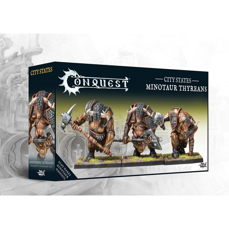 Lorsqu'ils ont été créés et confiés au Dominion, les Bred étaient destinés à être des ouvriers agricoles obéissants et malléables, les Minotaures constituant leur principale main-d'œuvre. Cependant, les humains n'ont pas tardé à voir cette masse de force imposante et ont décidé de l'utiliser à d'autres fins. Grâce à une reproduction intentionnelle et à un entraînement à l'hostilité, les Minotaures thyréens sont devenus une force indomptable sur le champ de bataille. Ils lancent des assauts imparables et manient des armes colossales qui rendent les défenses et les formations ennemies inutiles, ce qui fait d'eux une présence redoutable.