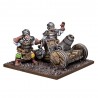 J'en profite !Après leur adhésion à la Ligue, l'armée du Shire et les brigades d'Ej ont également commencé à utiliser de l'artillerie à poudre, principalement grâce aux échanges de matériel militaire. Les canons à salve fournissent une puissance de feu dévastatrice à courte portée grâce à leurs multiples canons, tandis que l'obusier est un canon à longue portée capable de tirer des projectiles explosifs à grande distance.