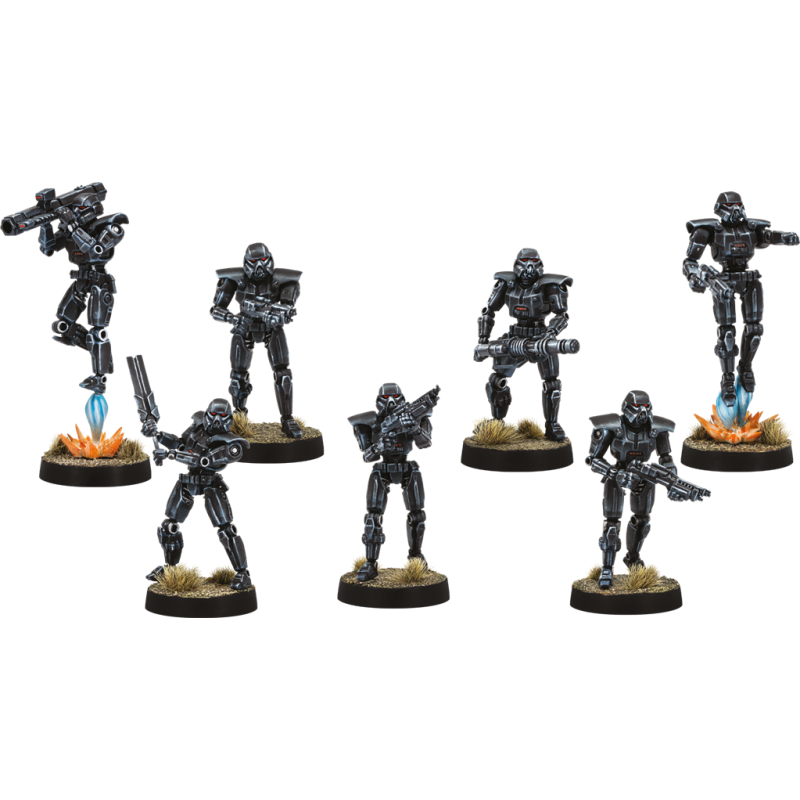 J'en profite !Les Dark Troopers sont un redoutable groupe de droïdes de combat d'élite, spécialement programmés pour semer la destruction. Bien plus redoutables que leurs homologues biologiques, les Stormtroopers, les Dark Troopers ne connaissent pas la peur et ne sont pas préoccupés par leur propre survie lorsqu'ils pourchassent leurs proies. Grâce à leurs propulseurs situés au niveau des pieds, ils peuvent s'envoler pour fondre sur leurs cibles et même être déployés directement depuis des vaisseaux.