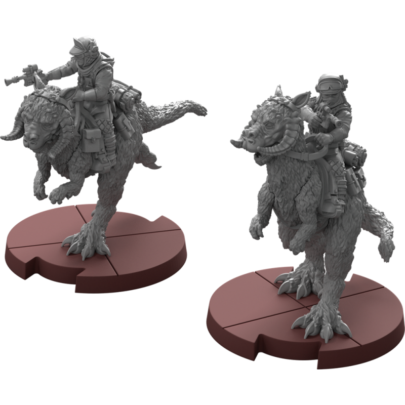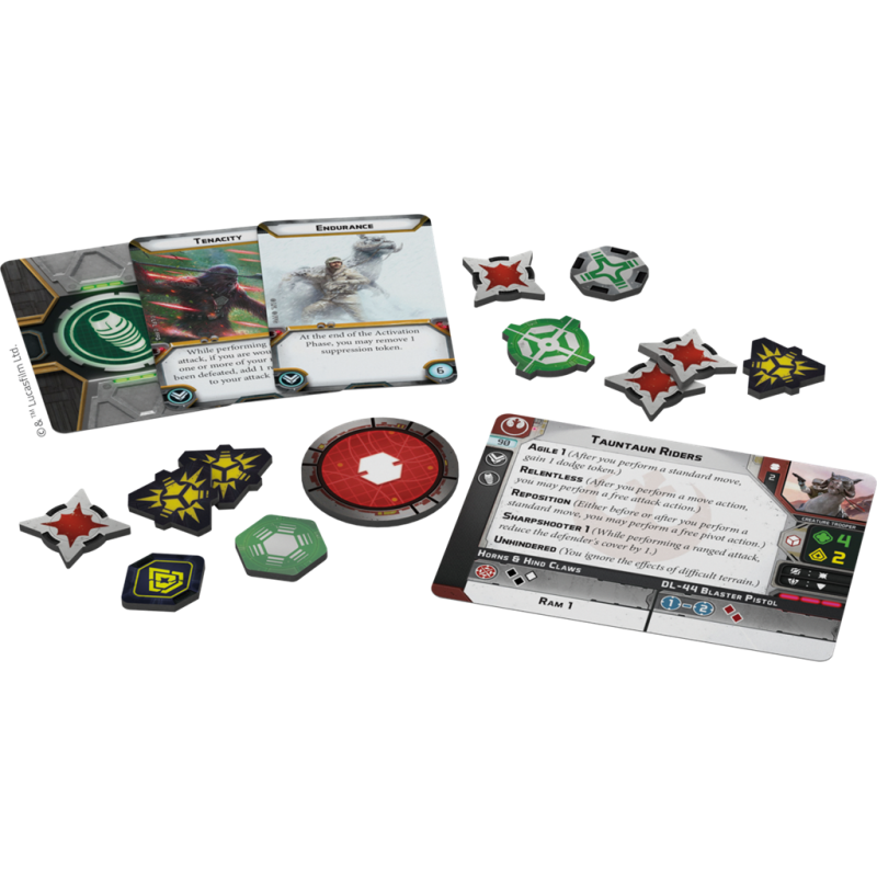 Cette extension propose deux figurines de cavaliers tauntaun non peintes, constituant une unité de soutien, ainsi qu'une nouvelle carte d'unité utilisable en combat. Grâce à leur agilité naturelle et à leur mécanisme de défense, les tauntauns sont des alliés précieux dans de nombreuses situations. En outre, trois cartes de mise à niveau sont incluses, permettant de personnaliser leur rôle en fonction de vos stratégies de bataille.